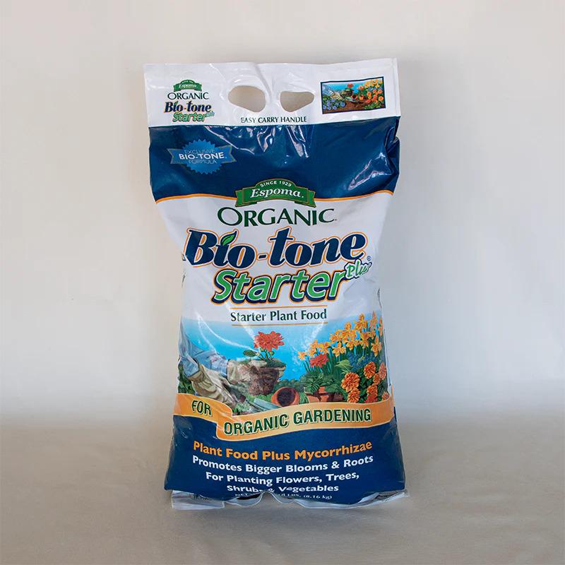 The ultimate starter plant food, Espoma Organic Bio-Tone Starter Plus 4-3-3 is an all natural organic, bio-active plant food enhanced with beneficial bacteria, humates, and mycorrhizae. Works naturally within the soil to help plants establish fast, withstand environmental stress, promote deeper, more developed roots and better blooms, and improve soil structure. Idea for transplanting and difficult planting conditions. Includes both Endo and Ecto Mycorrhizae.
