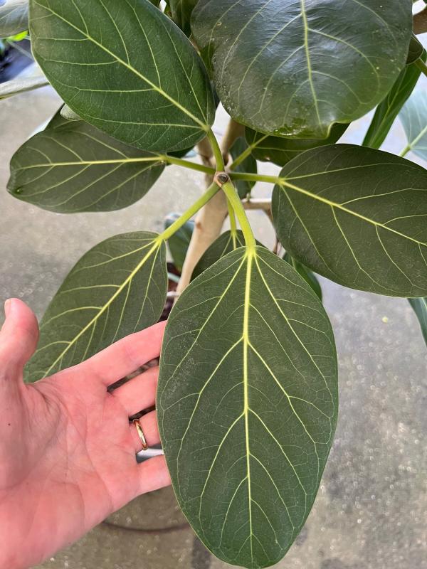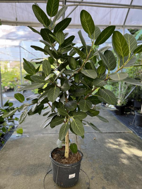 A variety of Ficus Benghalensis that has a light colored trunk with velvet green leaves and pale leaf veins. Loved as an indoor tree or tree for the porch. Prefers bright indirect light and for soil to be kept evenly moist.