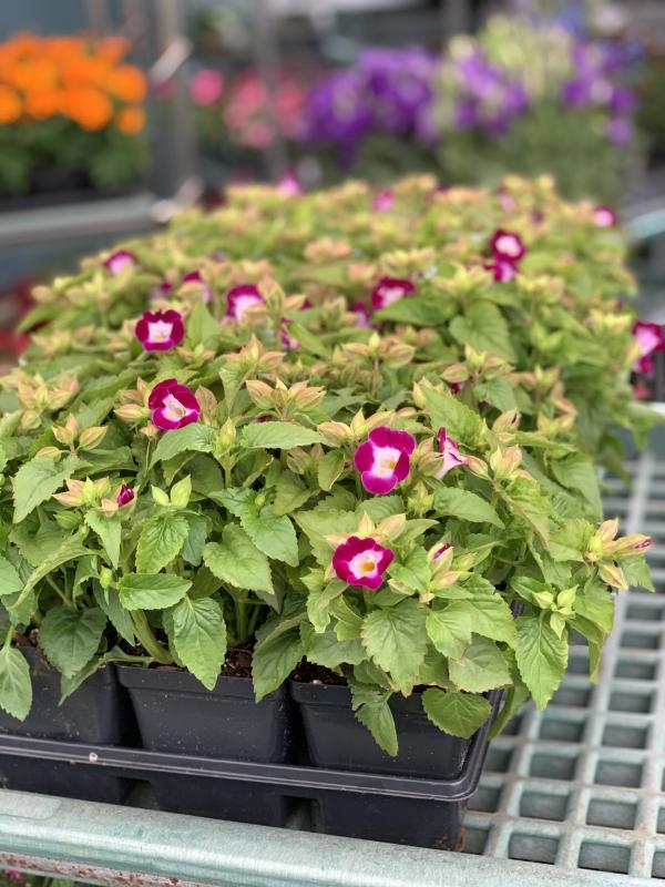 Torenia is a compact, mounding annual and tender perennial. These plants are upright and bushy, typically with bright to dark green and, in some cases, red-hued leaves. These plants originate from tropical and subtropical Asia, Africa, and the Americas. They naturally inhabit forests and many exist at high altitudes. Torenia flowers are variable and most are showy, with tubular, bilateral blossoms that have three lower petals and two upper petals. Many have a wishbone-like structure inside comprised of two stamens that arch and come together. The flowers, which appear as tiny trumpets, range in color from pink, blue, purple, and white.