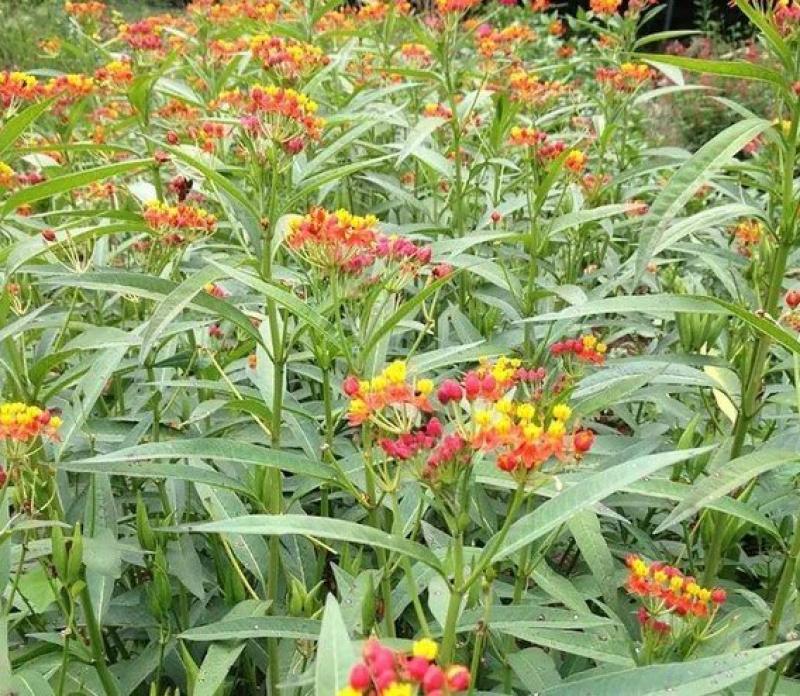 This very special 'Asclepias curassavica'' has beautiful green and white variegated foliage that is tinged with red, orange and pink leaf tips. The bright orange-red flower attracts Monarch butterflies and many other species of butterflies, bees and hummingbirds.
